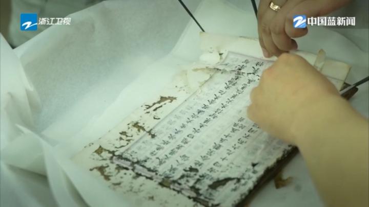 浙江图书馆古籍修复师 汪帆:这种类似于书砖,书砖是很多修复工作当中,属于难度最大的一个,它难揭,很难给它分开。