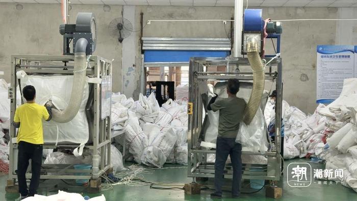 梅山旺整理第一批加工增值免关税货物——编织集装吨袋。潮新闻记者 甘居鹏 摄