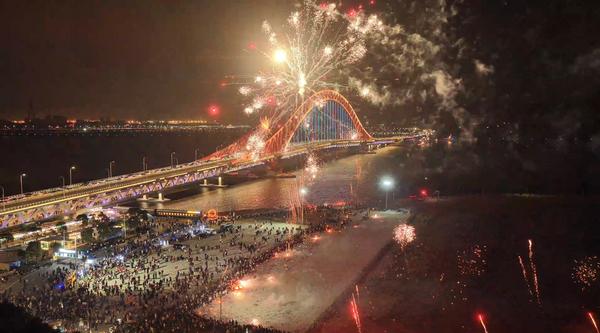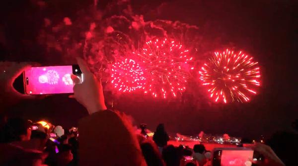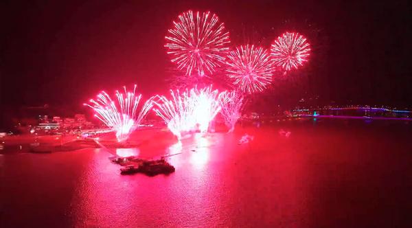 随着夜幕降临,宁波北仑的梅山红桥边聚集了越来越多前来跨年的市民,共同迎接新年。当零点钟声响起,各式各样、绚丽多姿的烟花在夜空中绽放,与红桥相互辉映,现场五彩斑斓、璀璨如画。