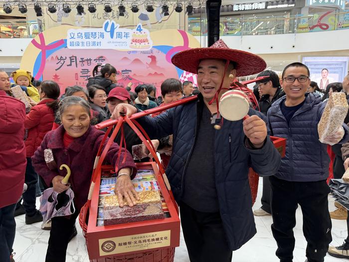 货郎担重现“鸡毛换糖”场景。共享联盟·义乌 傅柏琳 摄