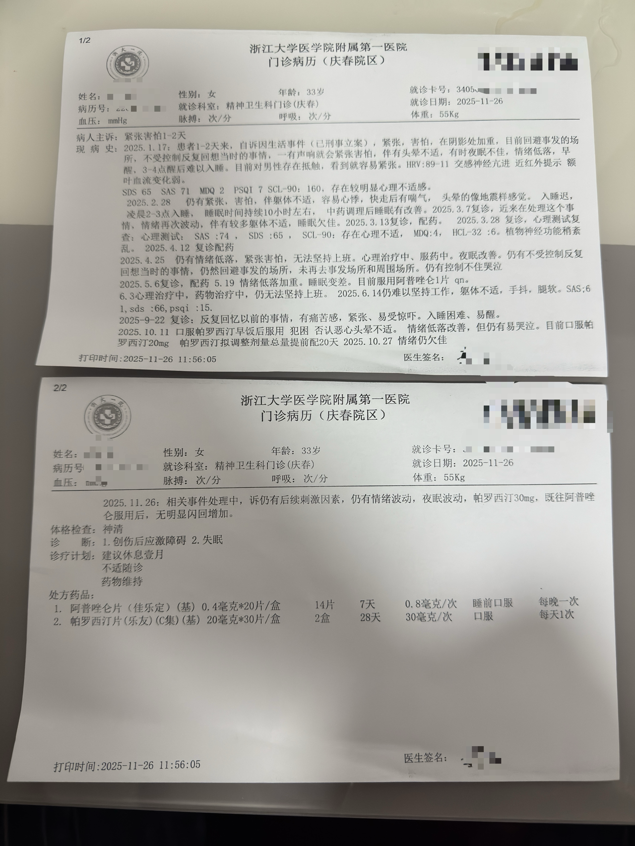 魏莹提供的门诊病历照片 受访者供图