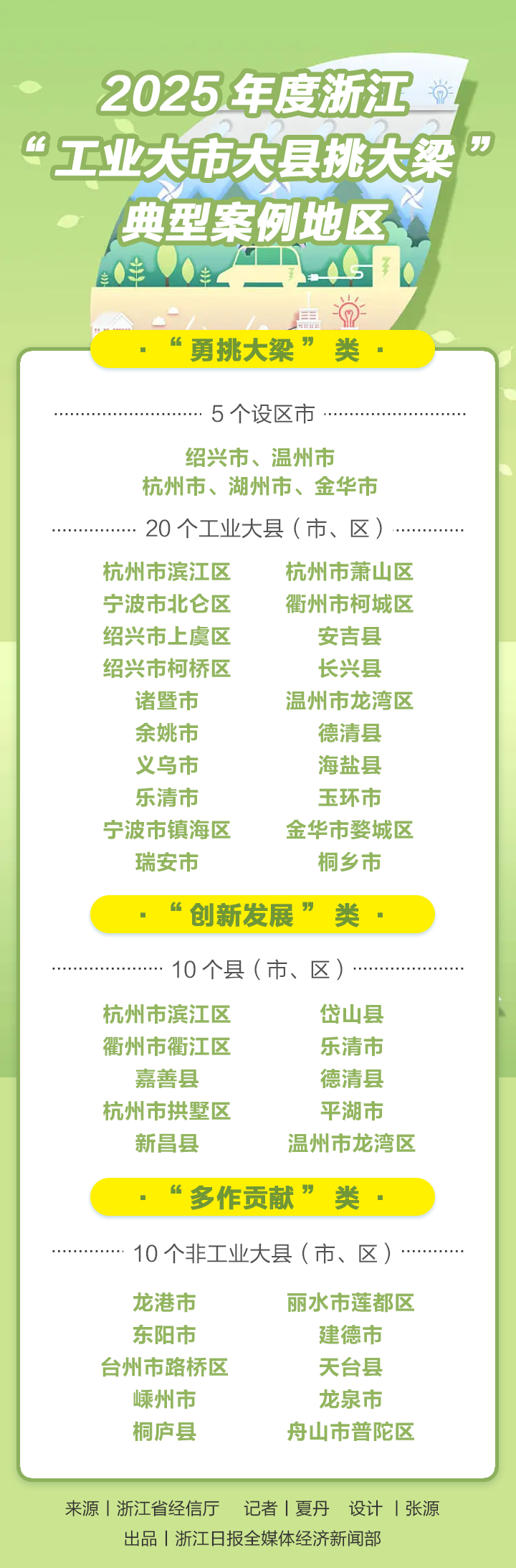 过去一年,工业大市大县发展成效如何?1月8日,浙江省经信厅发布了2025年度“工业大市大县挑大梁”典型案例,分为“勇挑大梁”“创新发展”“多作贡献”三个评价维度。“榜上有名”都有谁,涌金君和您一起看个究竟。