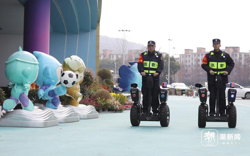 安保开展场馆外巡逻。潮新闻 记者 汪驰超 摄