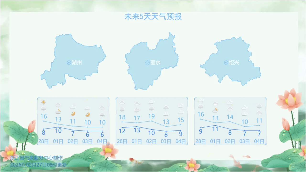 今天(28日)白天,全省以多云到阴天气为主,仅浙南地区偶有小雨飘过。想出门散步、踏青透气、简单洗晒的朋友,一定要抓住这短暂的时光。