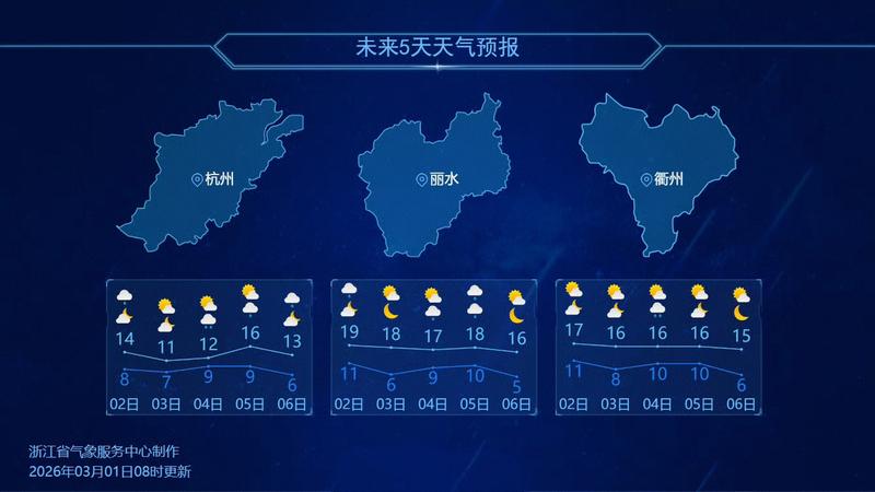 部分城市天气预报。图源:浙江天气