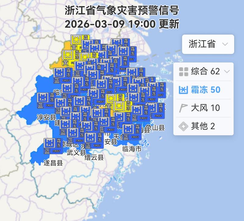 霜冻预警。图源:浙江天气