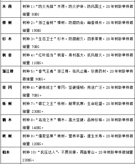 2023年,浙江省林业局就从省内主要优势群落树种、乡土树种及已驯化的造林乔木树种中评选出木荷、樟树、杉木“十大碳汇树种”,大家不妨多多参考。