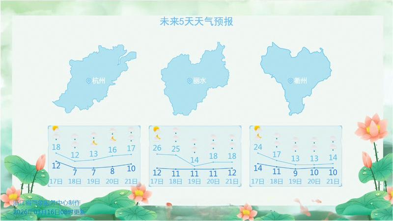 今天依然是暖区天气控制浙江,因为天况比昨天好,丽水最高气温将直冲26℃,衢州预报24℃,因此浙西南地区仍可把春装作为主力穿搭。