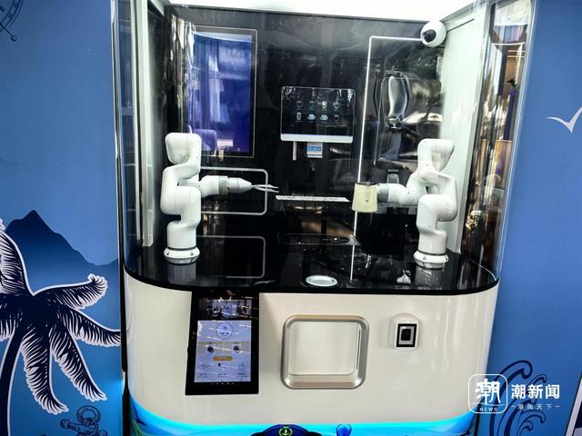 如果你来到位于博鳌亚洲论坛会场的“智享零碳吧”,可以来一杯“零碳”咖啡。升级后的咖啡大师机器人,实现咖啡豆全链路“零碳溯源”,嘉宾扫码即可实时追踪碳数据、生成个人碳足迹报告,让零碳理念可感可触;酸奶拉花机器人支持自定义姓名与图案打印,兼顾实用性与趣味性;风旋光影Logo装置巧妙利用自然风能转化为动态光影,直观可视化展示“风-电-光”零碳转化全过程,甚至还能在这里品尝到一杯由空气制成的水,感受绿色与科技结合的味道。